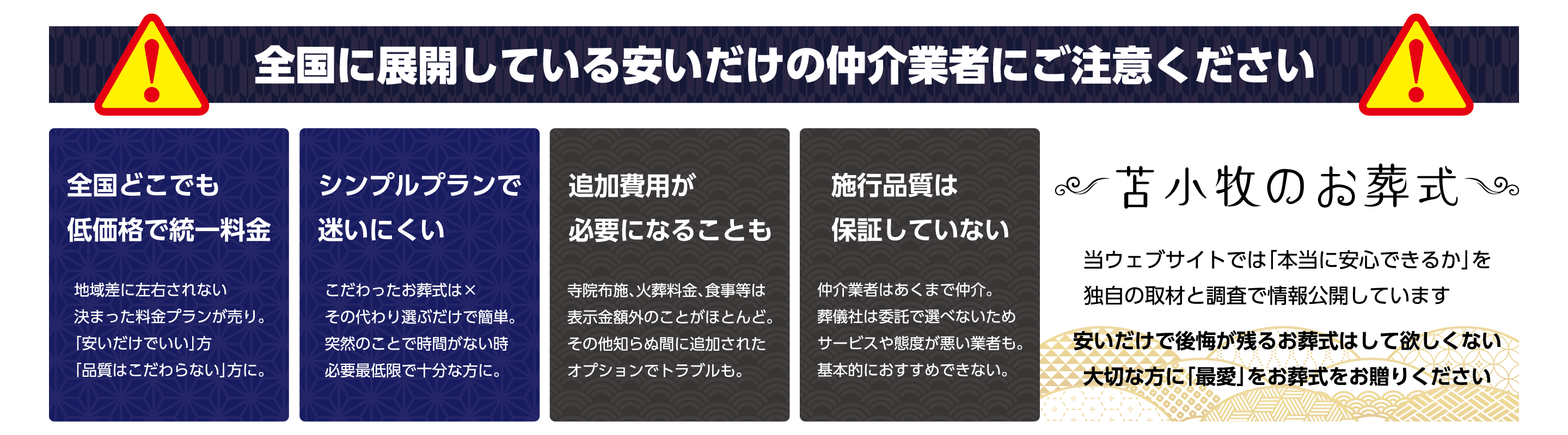 ※苫小牧のお葬式.comは施行内容と料金を保証するサービスではありませんが、信頼があり安心してお葬式を任せられ、かつ適正・明朗会計である業者を各種ご紹介しています。